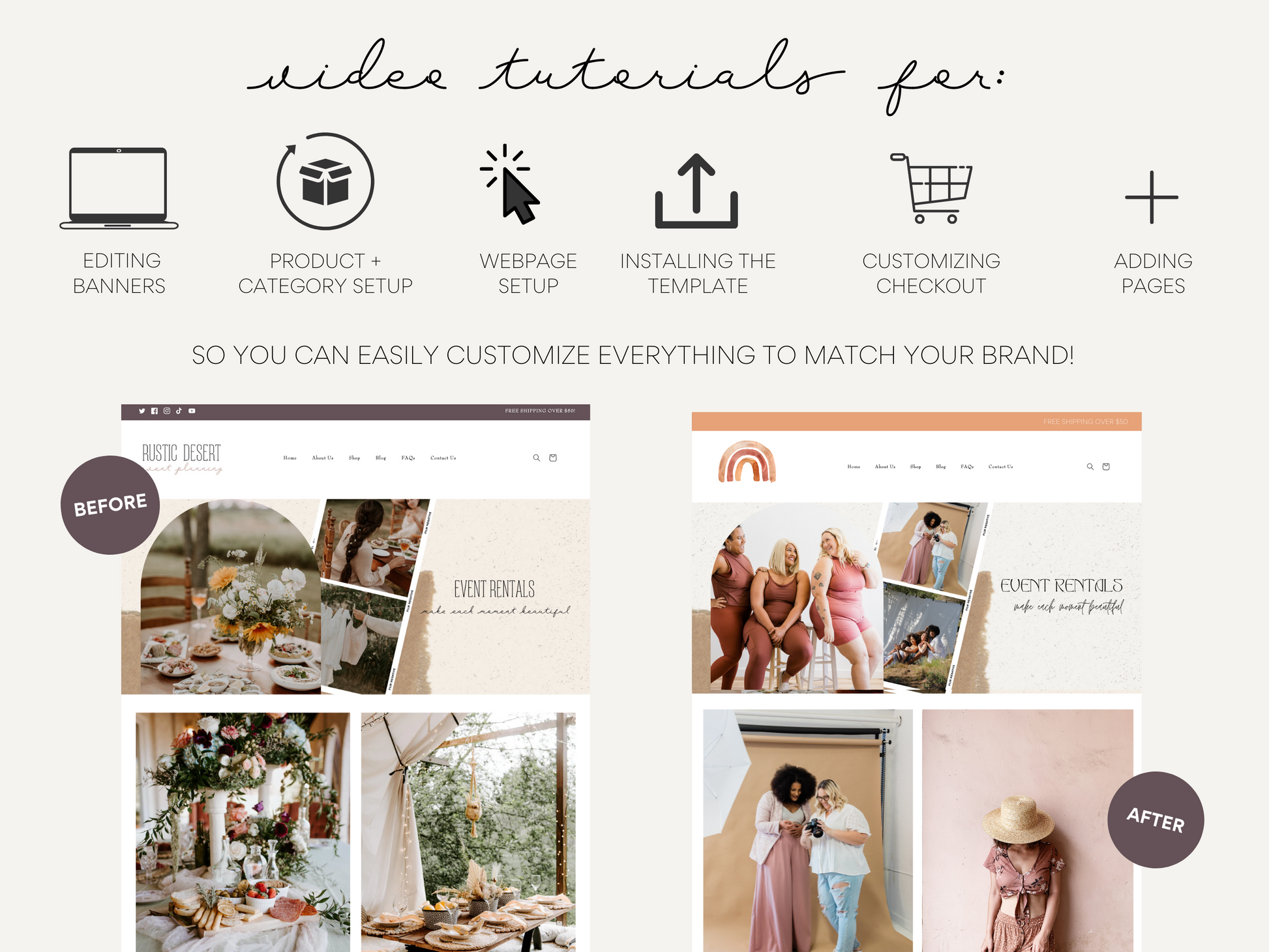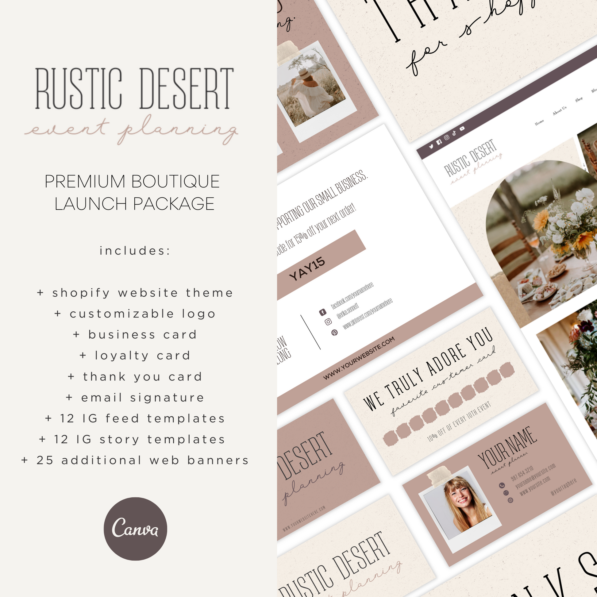 Rustic Desert - Neutral Shopify Theme Template, 45+ Canva Design Templates + Brand Assets | Created by #EasyWebsiteThemes, an official Shopify Developer